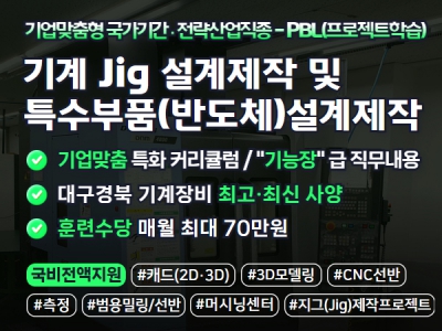 국가기간전략산업직종 > 기계설계 및 가공 프로젝트 기반 지그(Jig)설계제작 및 특수부품생산 복합가공인력 양성 (6회차) 수강신청 |